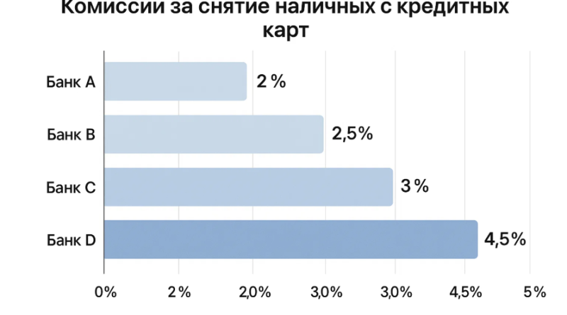 Сравнение комиссий за снятие наличных с кредитных карт в разных банках